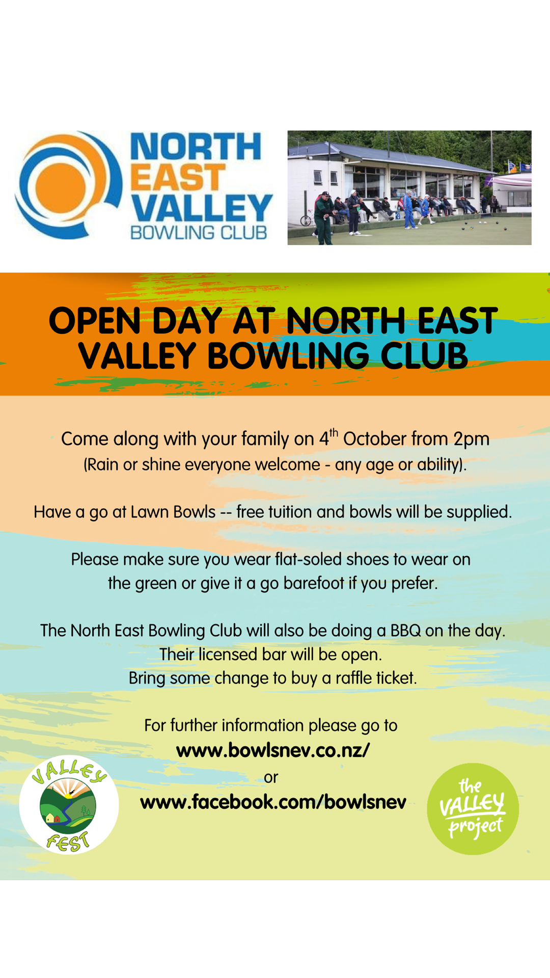 The North East Valley Bowling club will also be doing a BBQ on the day.