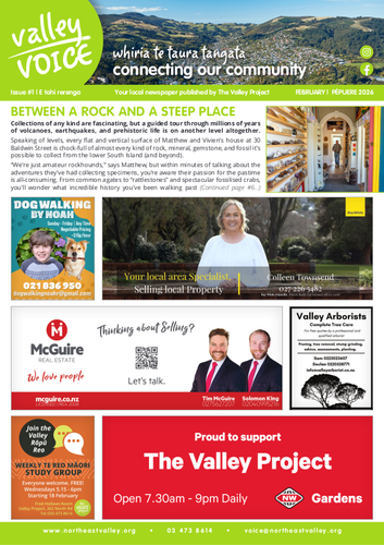 The Valley Voice is a free community newspaper delivered to ~3800 mailboxes in the north Dunedin suburbs of North East Valley, Opoho, Upper Junction, Normanby, Dalmore, and Pine Hill.