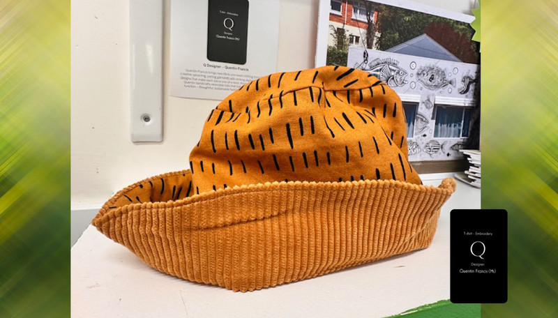 Quentin Francis brings new life to pre-loved clothing through creative upcycling, pairing garments with striking digital embroidery designs that make each piece one-of-a-kind. Alongside her apparel, Quentin handcrafts reversible hats that balance both style and function – thoughtful, sustainable fashion with a unique edge.